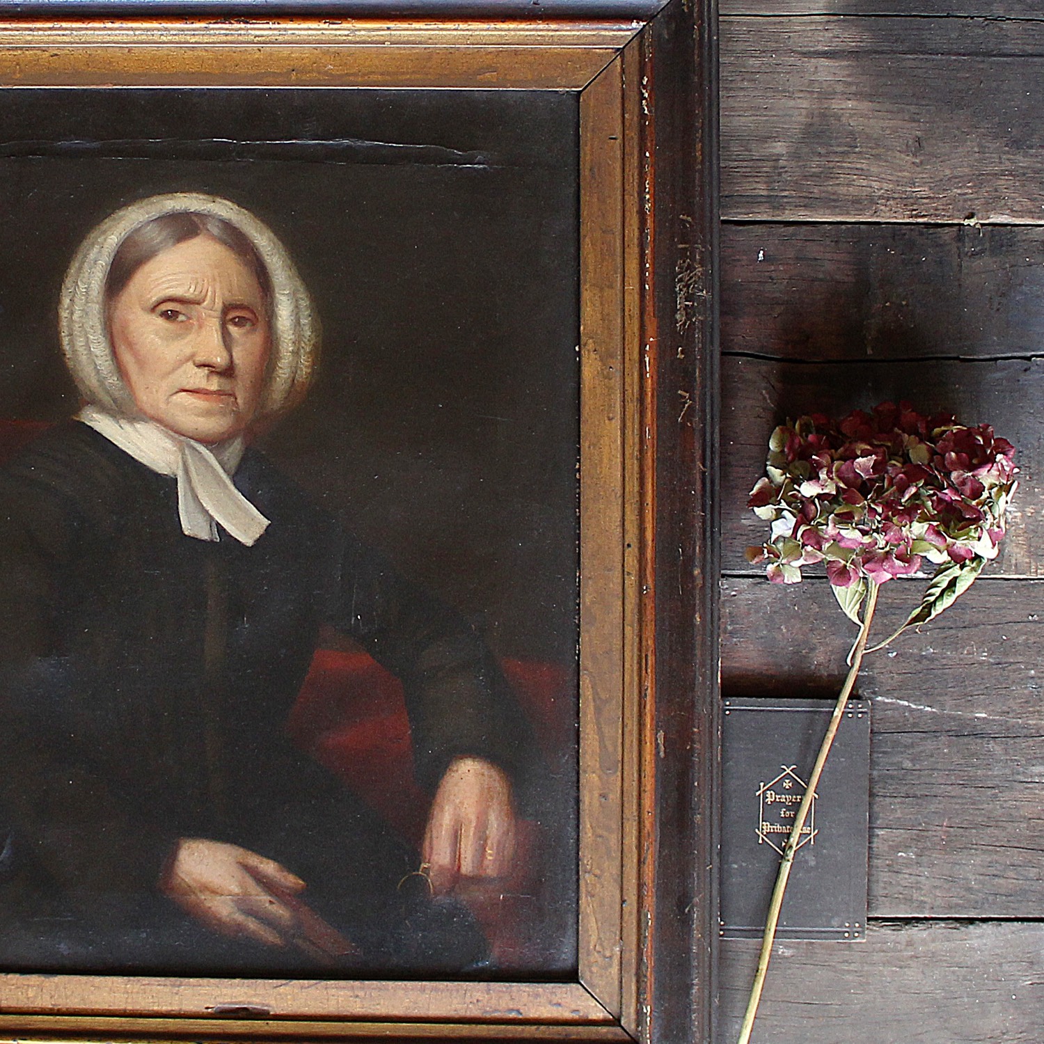 Portrait of a Female Quaker Holding Spectacles, Naive Antique Painting, Folk Art