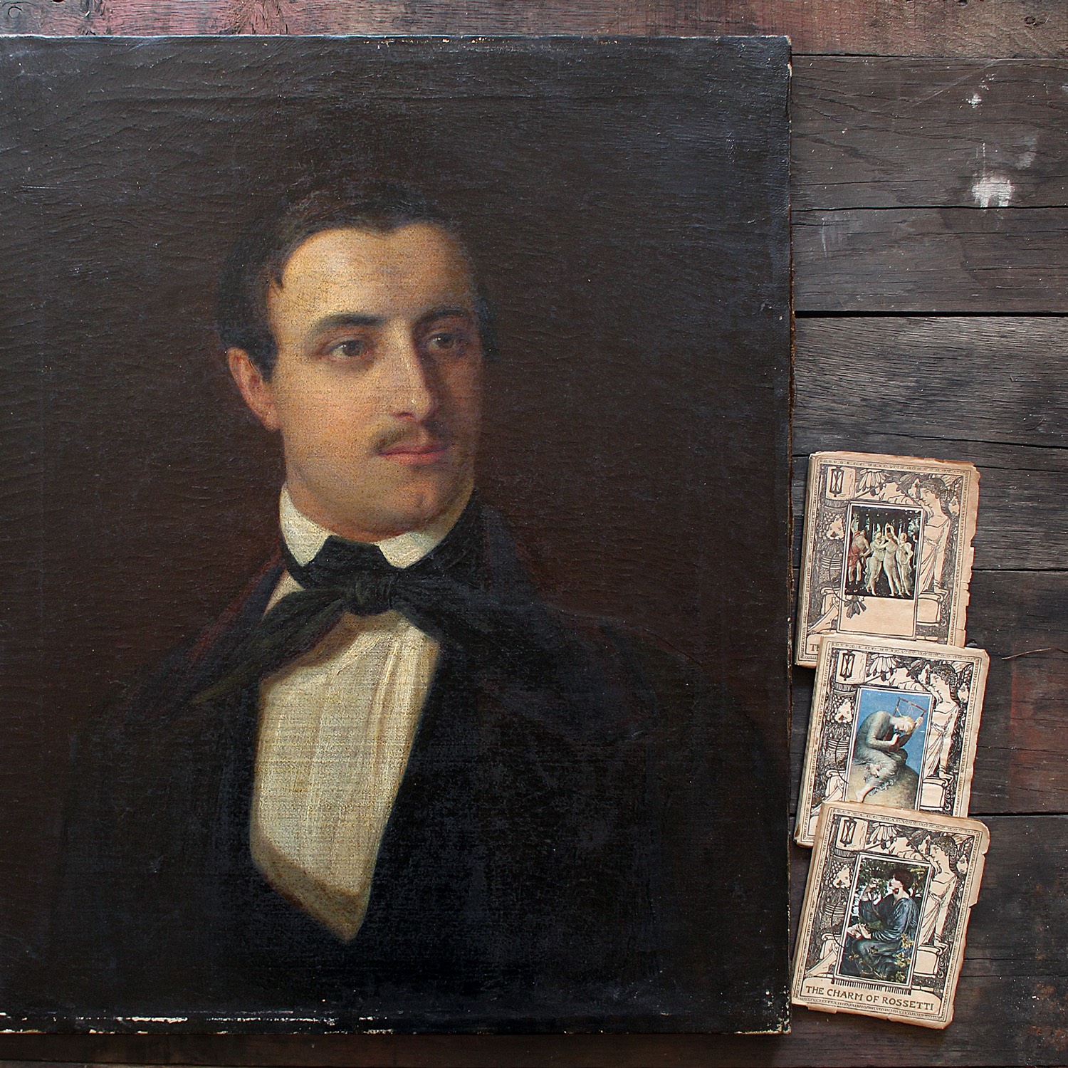 Portrait of a Gentleman with a Black Bow Tie, Antique Oil Painting