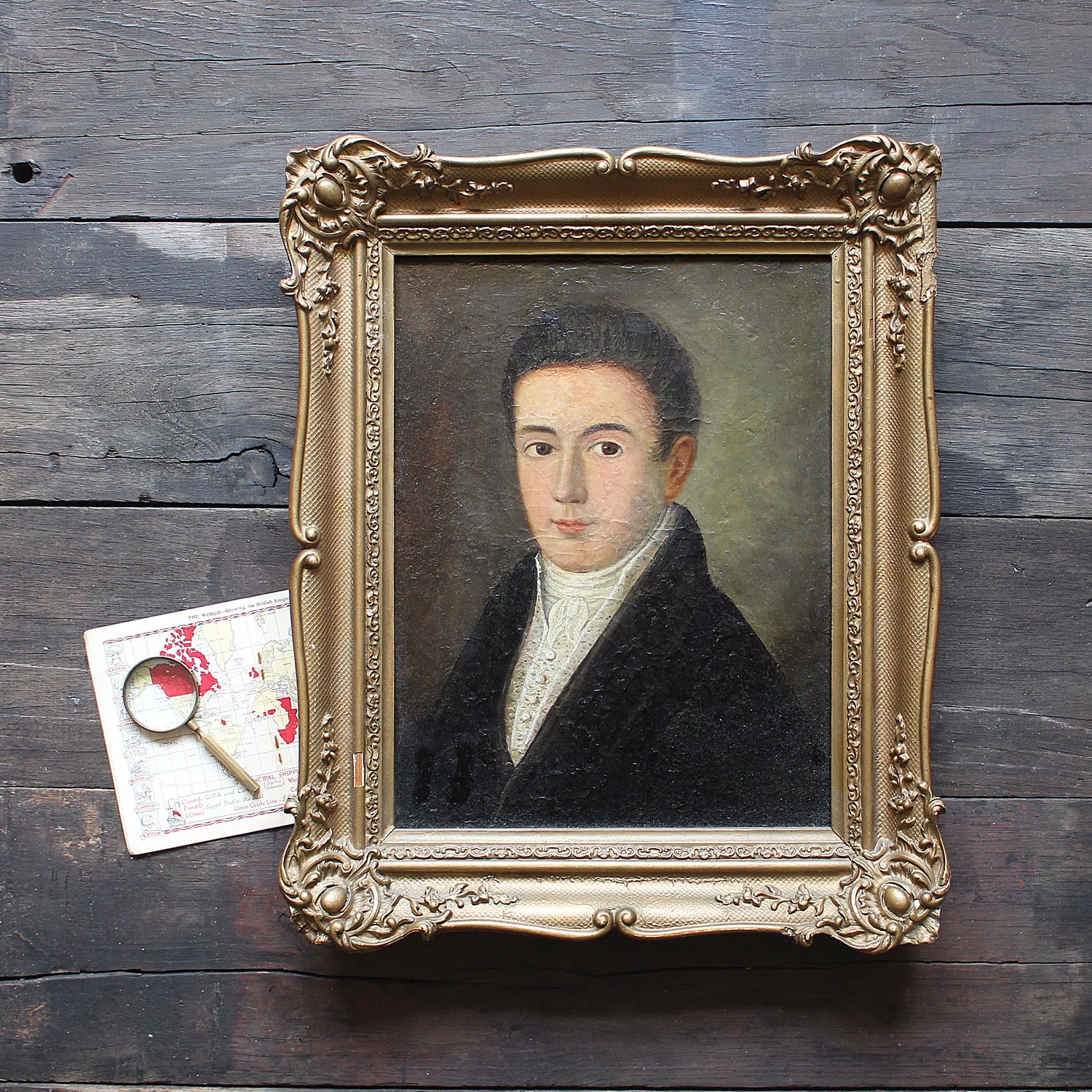 Portrait of a Gentleman with a White Cravat, Antique Oil Painting, European, Naive Portrait