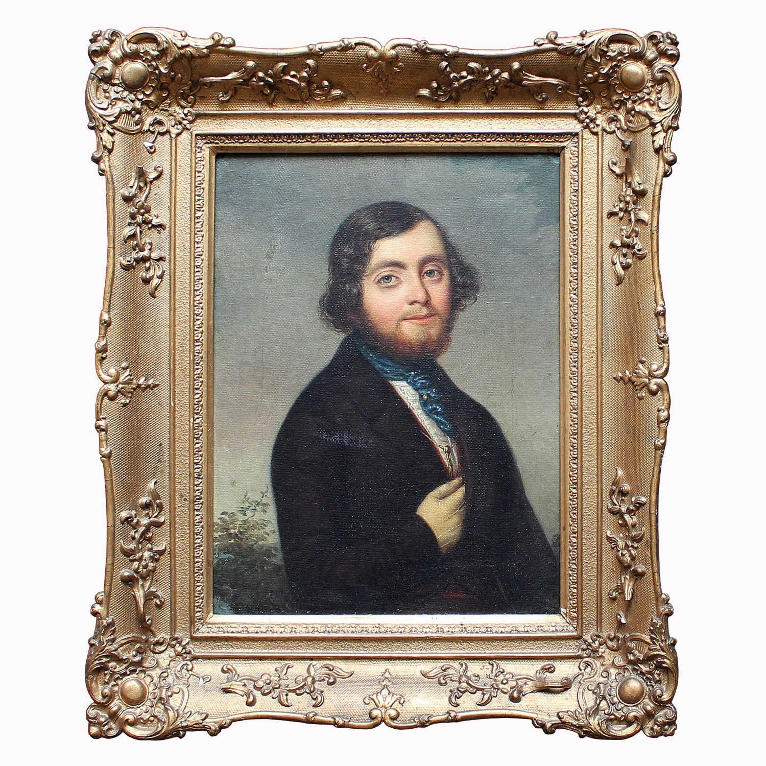 Portrait of a Gentleman with a White Glove, Original 19th Century Oil Painting