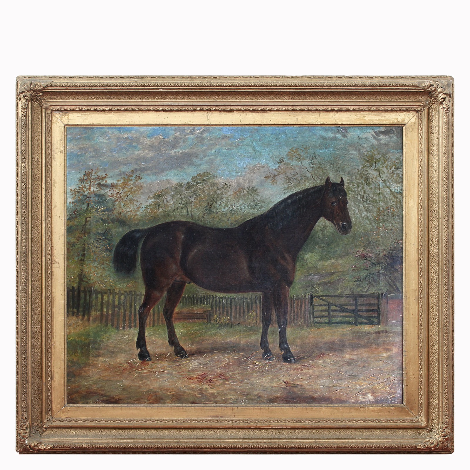 Portrait of Alonzo, Dark Brown Stallion, Provincial English Horse Painting