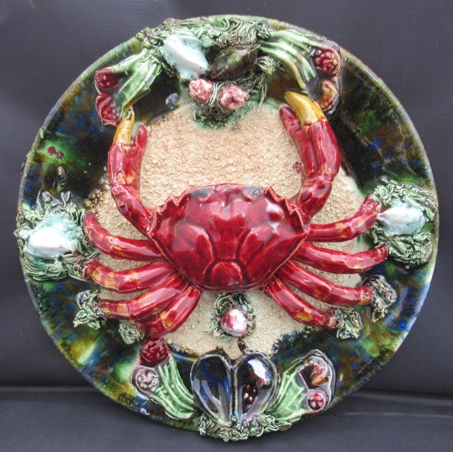Portuguese Majolica Jose Alvaro Palissy Style Crab Plate, Vintage