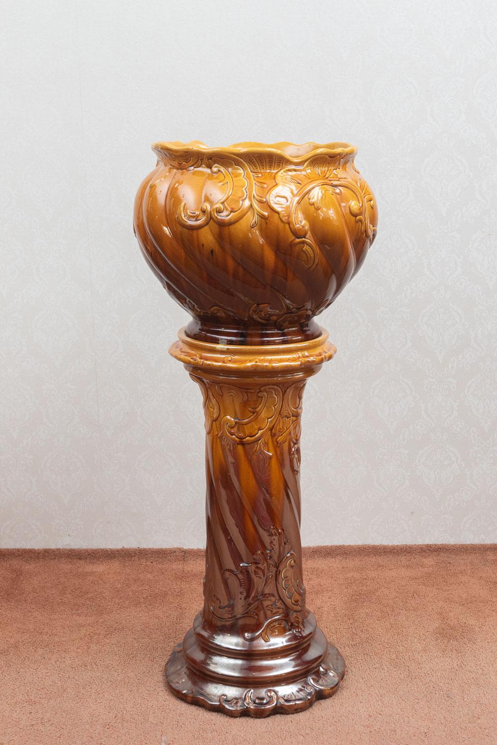 Pottery Jardinière on Matching Stand