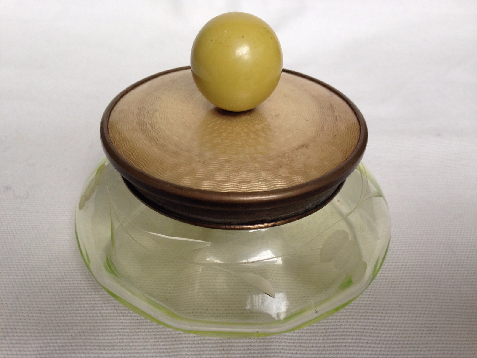 Powder Jar Box with mirror under the lid and etching glass jar