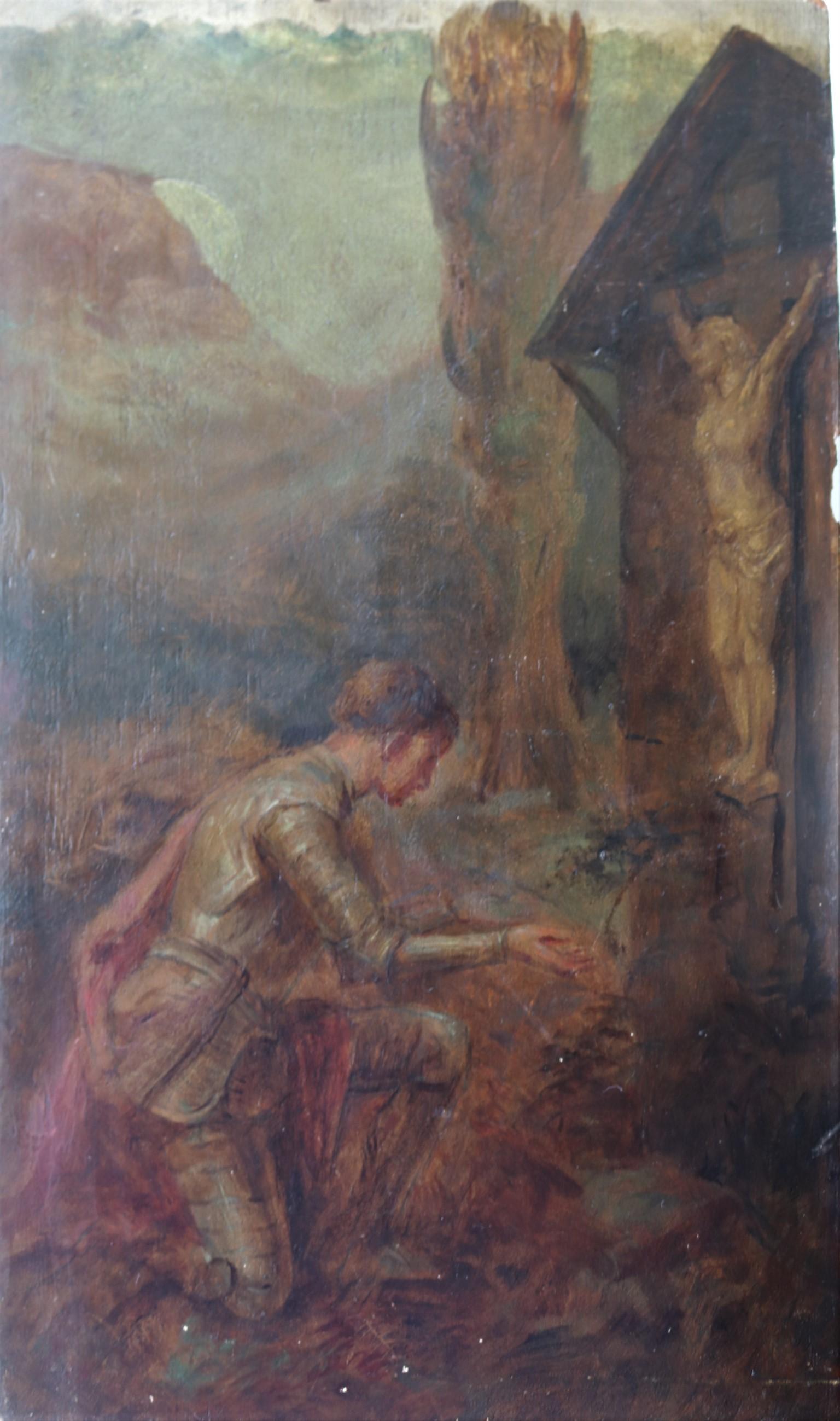 Pre Raphaelite School - The Penitent Crusader - Oil on Panel