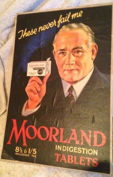 Pre War Large Cardboard Point of Sale Card Moorland Tablets