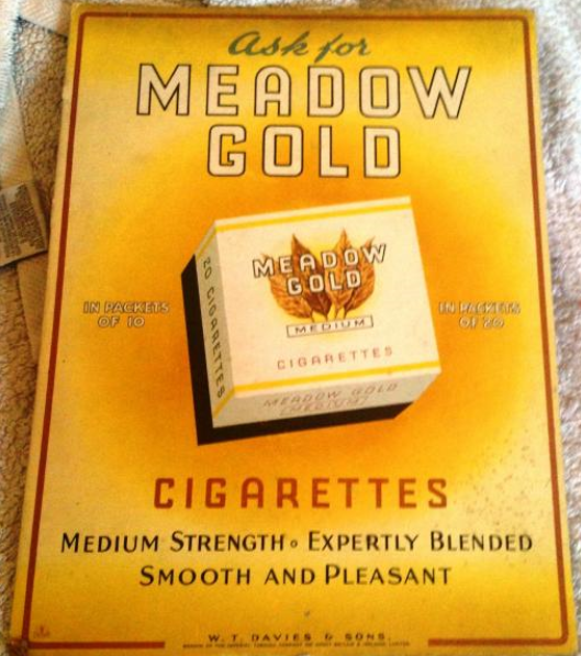 Pre War Rare Meadow Gold Cigarettes Point of Sale Card