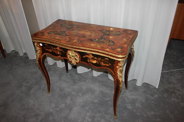 Precious English Card Table in French Style, Louis XV Style, First Half of the 19th Century