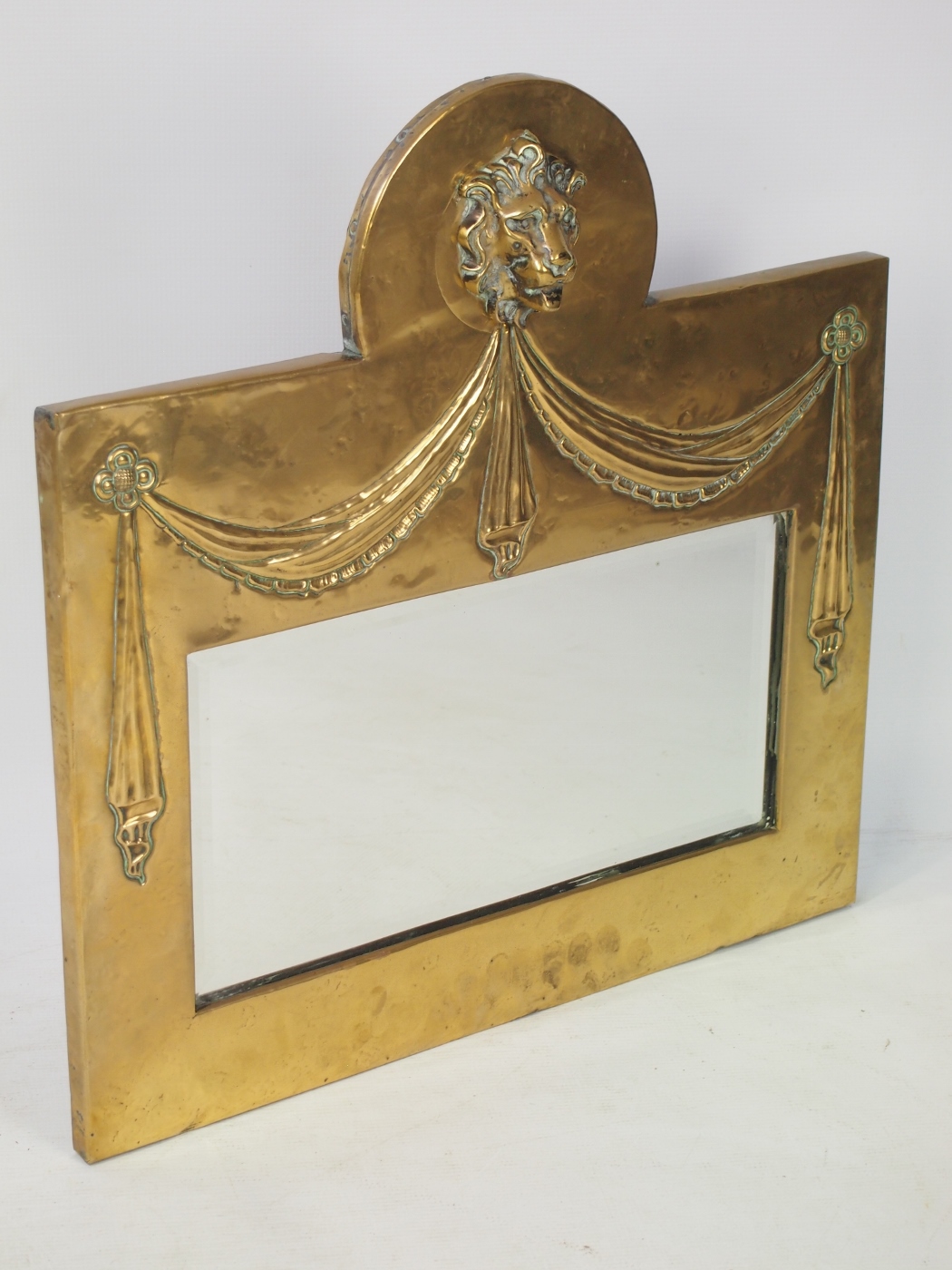 Pressed Brass Wall Mirror with Lion Head Mask (1 of 1)