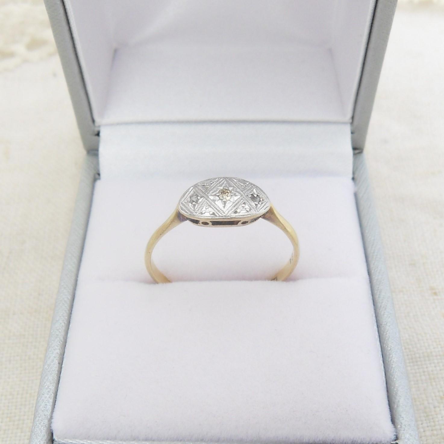 Pretty 18ct Gold Art Deco Diamond Set Ring Size Q