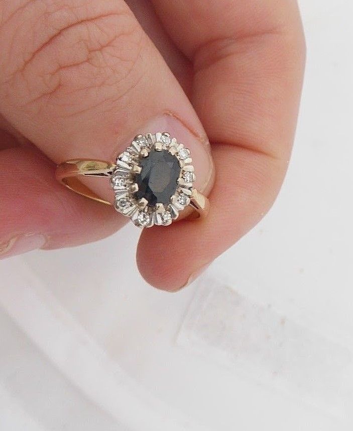 Pretty 18ct Gold Diamond & Sapphire Cluster Ring