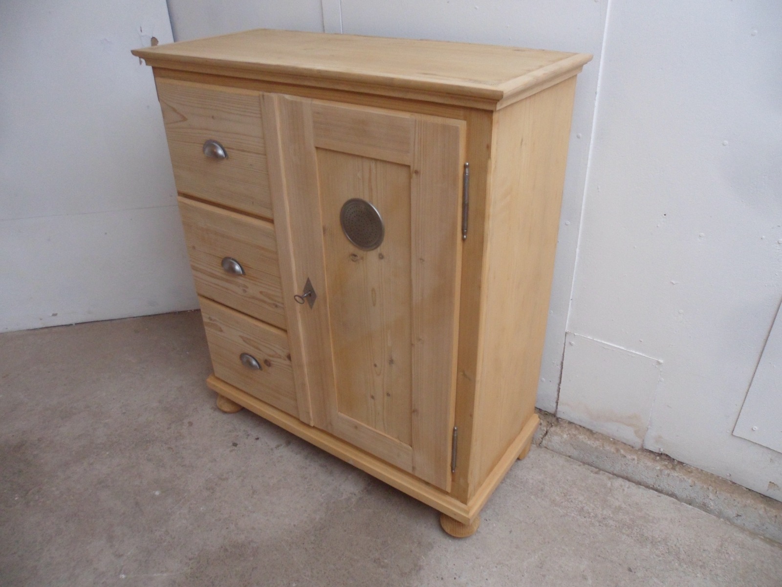 Pretty 1920s Old Pine 3 Drawer Kitchen Food Cupboard to wax / paint