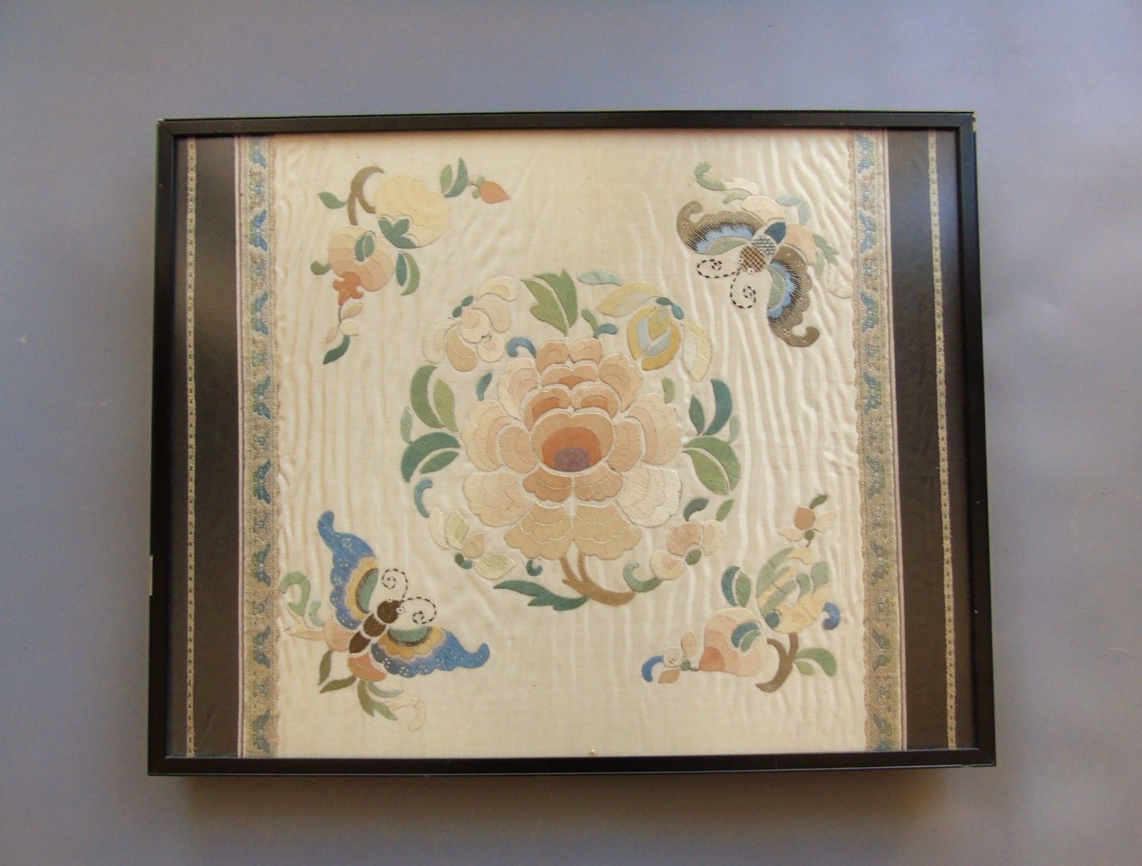 Pretty 19th Century Embroidered Panel with Butterflies (1 of 1)
