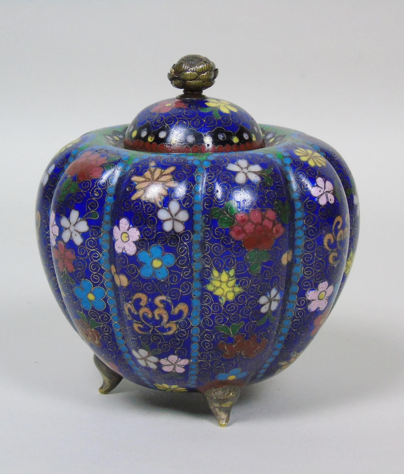 Pretty 19th Century Japanese Meiji Cloisonne Pumpkin Jar (1 of 6)
