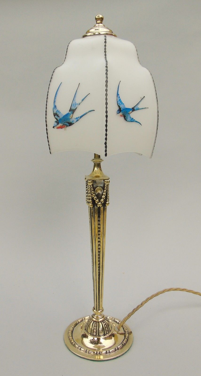 Pretty Antique Brass Table Lamp Swallow Shade c.1910 (1 of 1)