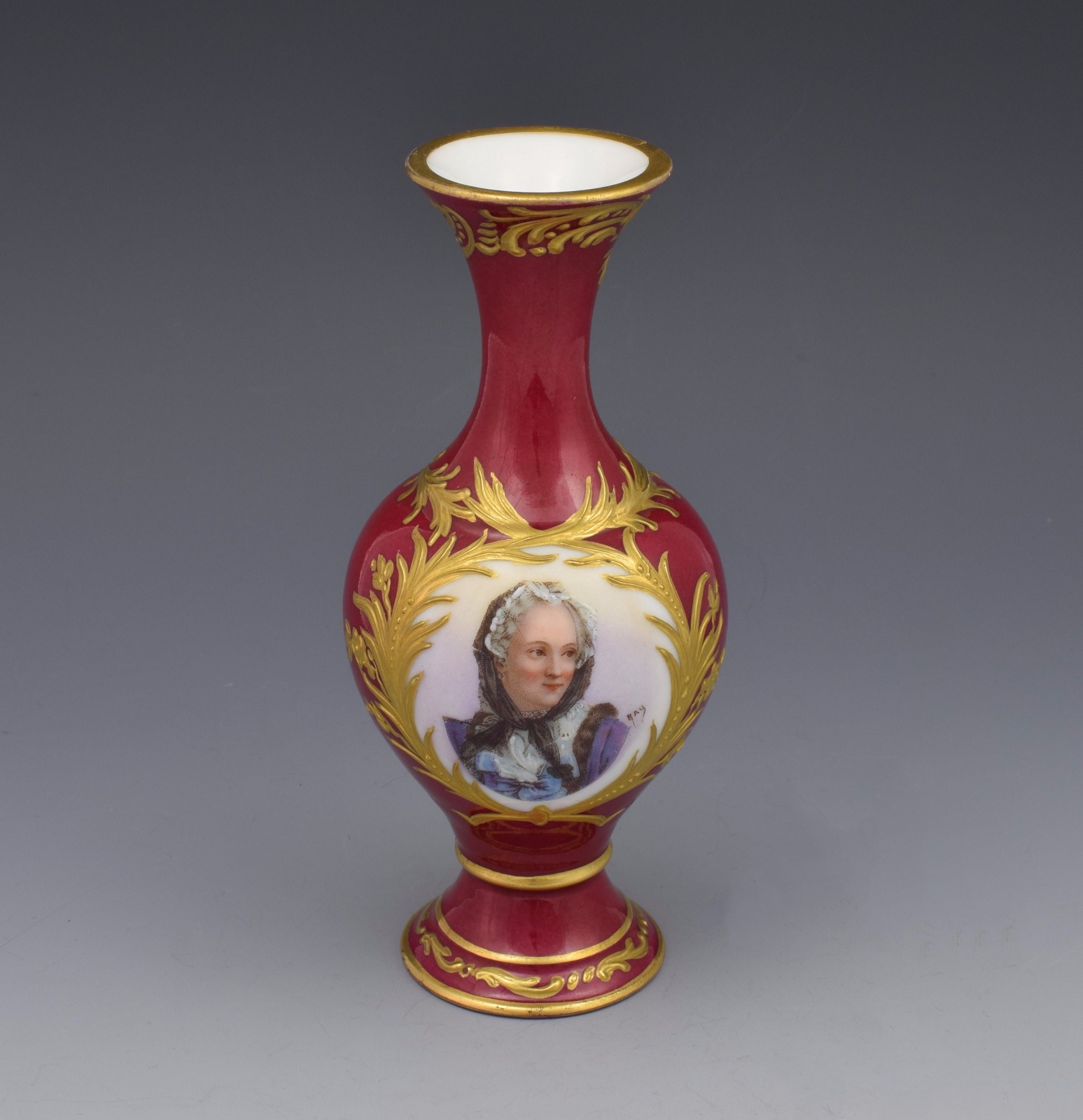 Pretty Antique French Sevres Style Red Ground Portrait Vase (1 of 13)