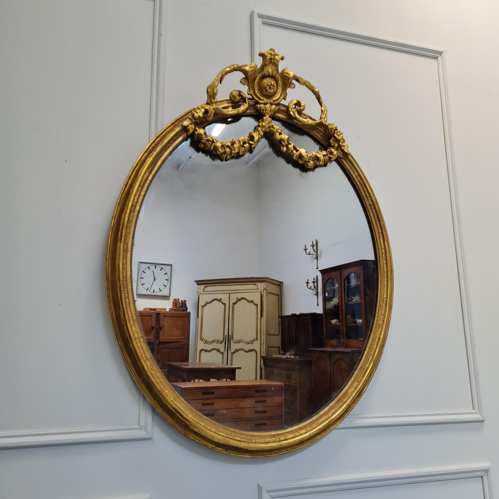 Pretty Antique Gilded Oval Mirror c.1870