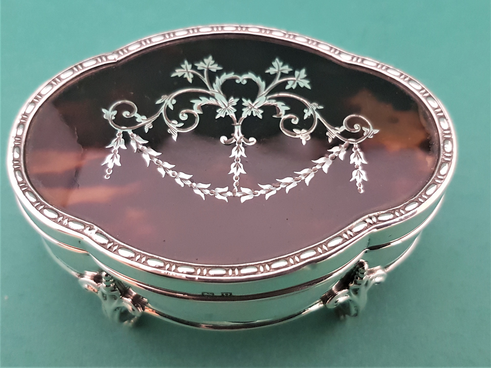 Pretty Antique Silver & Tortoiseshell Trinket Box 1913