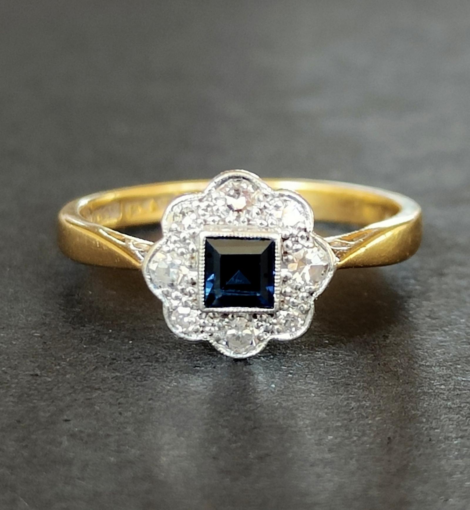 Pretty Art Deco 18ct Gold Platinum Sapphire and Diamond Ring