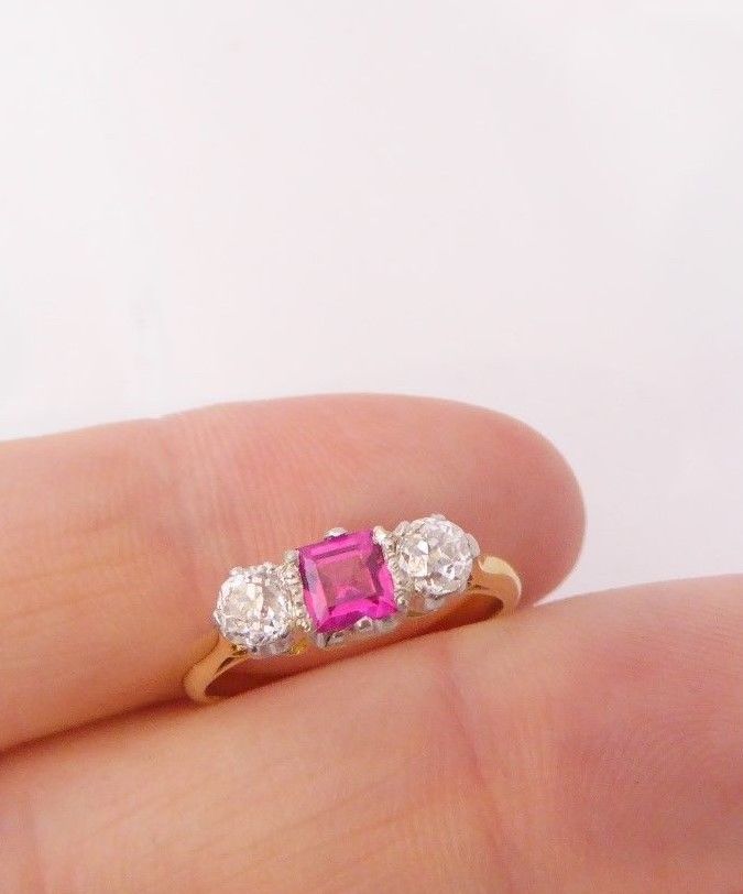 Pretty Art Deco 18ct Gold Ruby & 0.5ct Diamond Ring