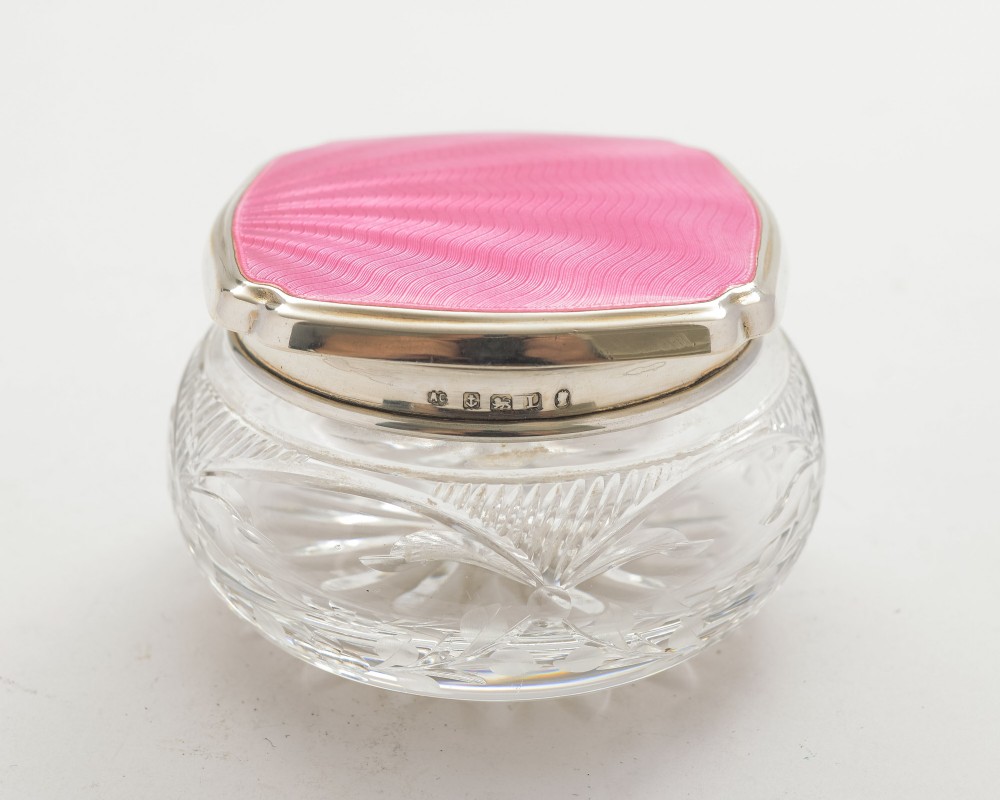 Pretty Art Deco Silver Enamelled Topped Jar - Birmingham 1935