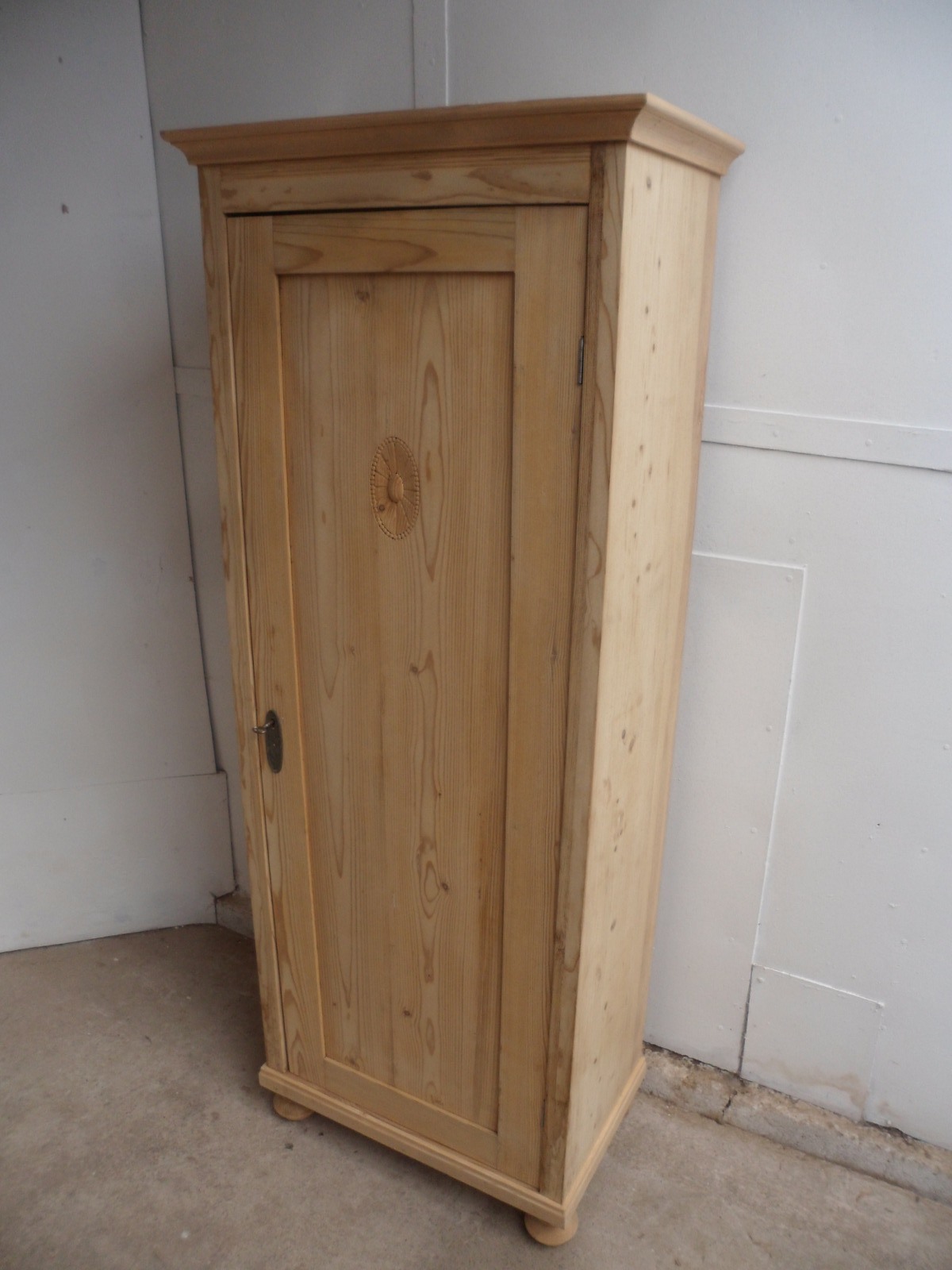 Pretty Carved Old Pine Child's Wardrobe / Cupboard to wax / paint
