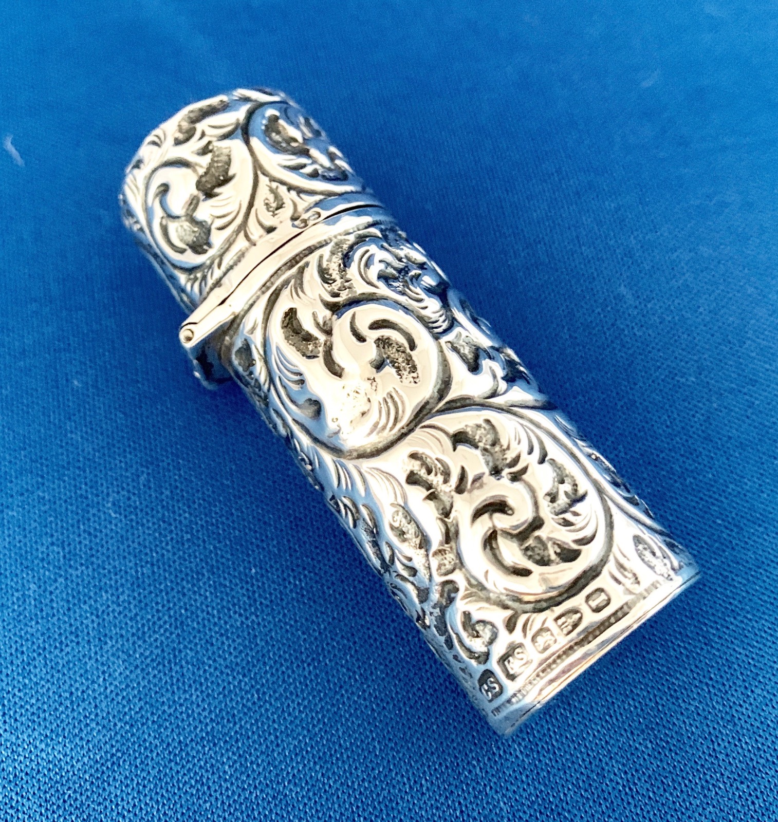Pretty Cylindrical Silver Encased Scent Perfume Bottle