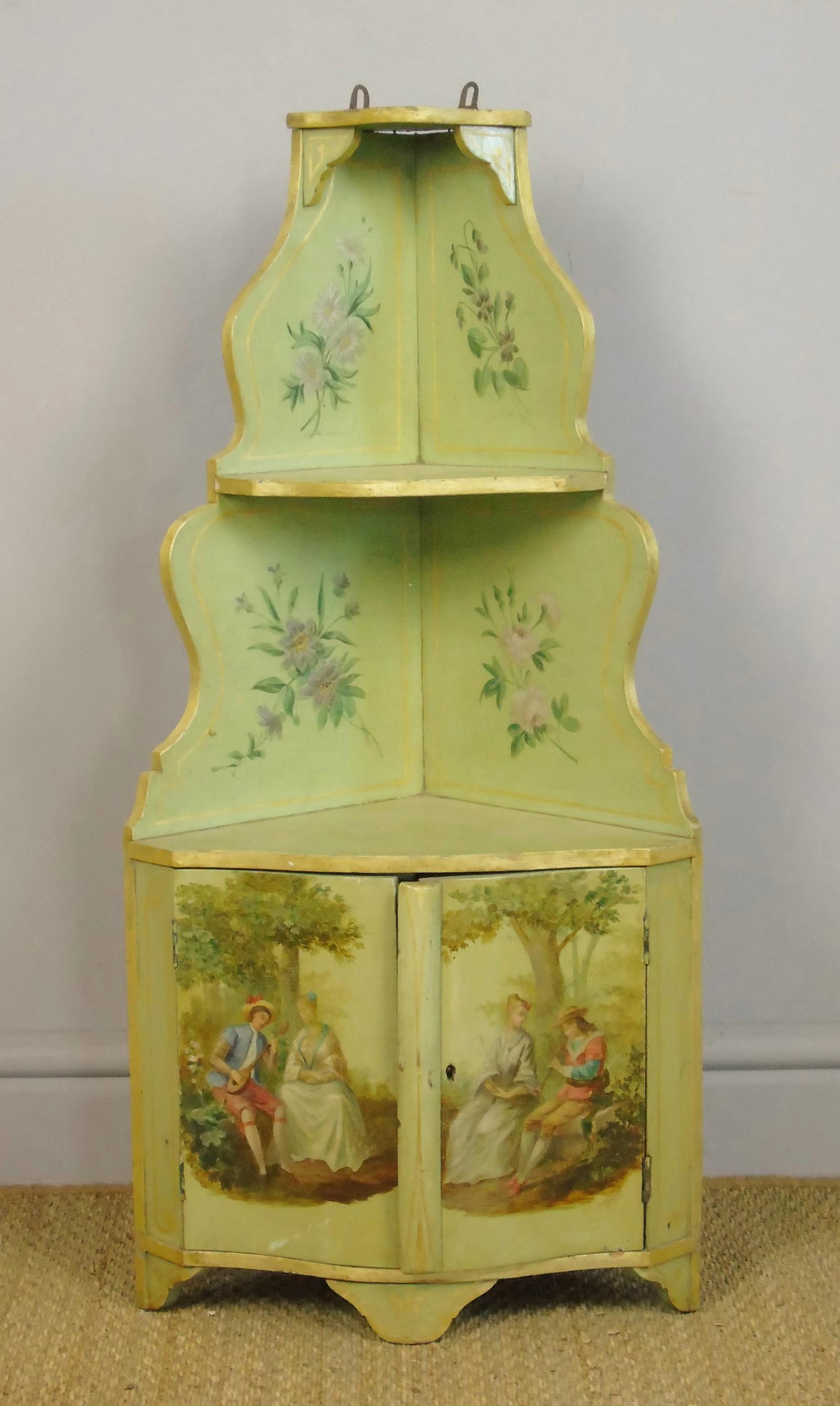 Pretty Early 20th Century Hand Painted Wall Corner Cupboard