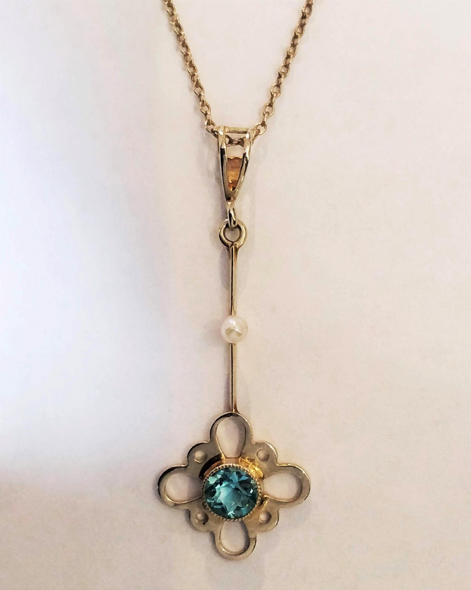 Pretty Edwardian 14ct Gold Aquamarine Necklace / Pendant