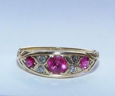 Pretty Edwardian 18ct Gold Ruby & Diamond Ring