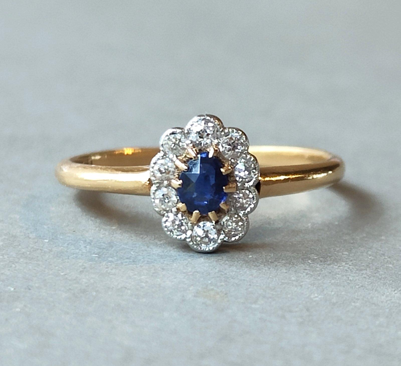 Pretty Edwardian 18ct Gold Sapphire Diamond Cluster Ring (1 of 9)