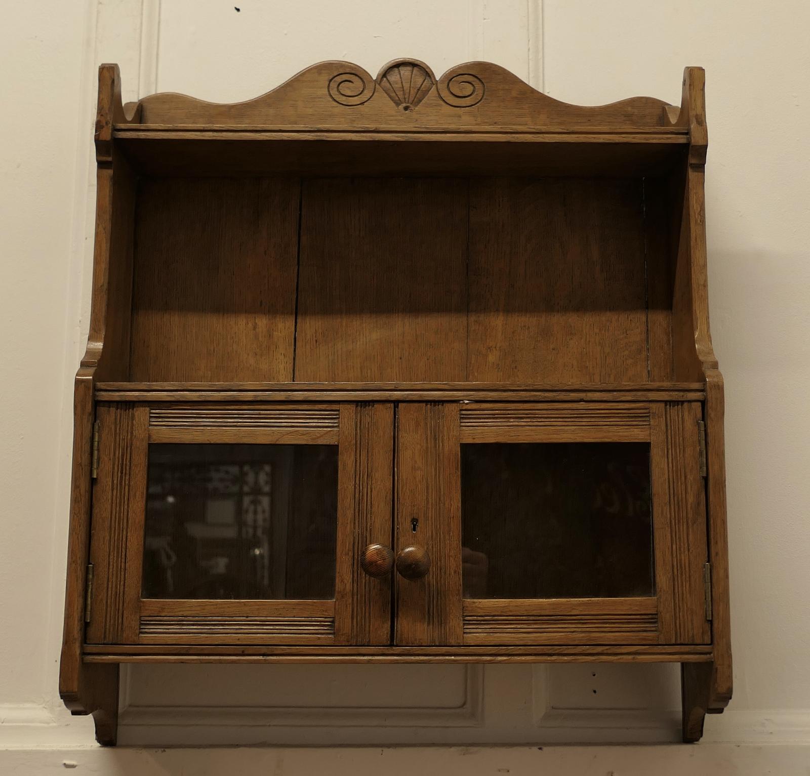 Pretty Edwardian Oak Wall Cabinet