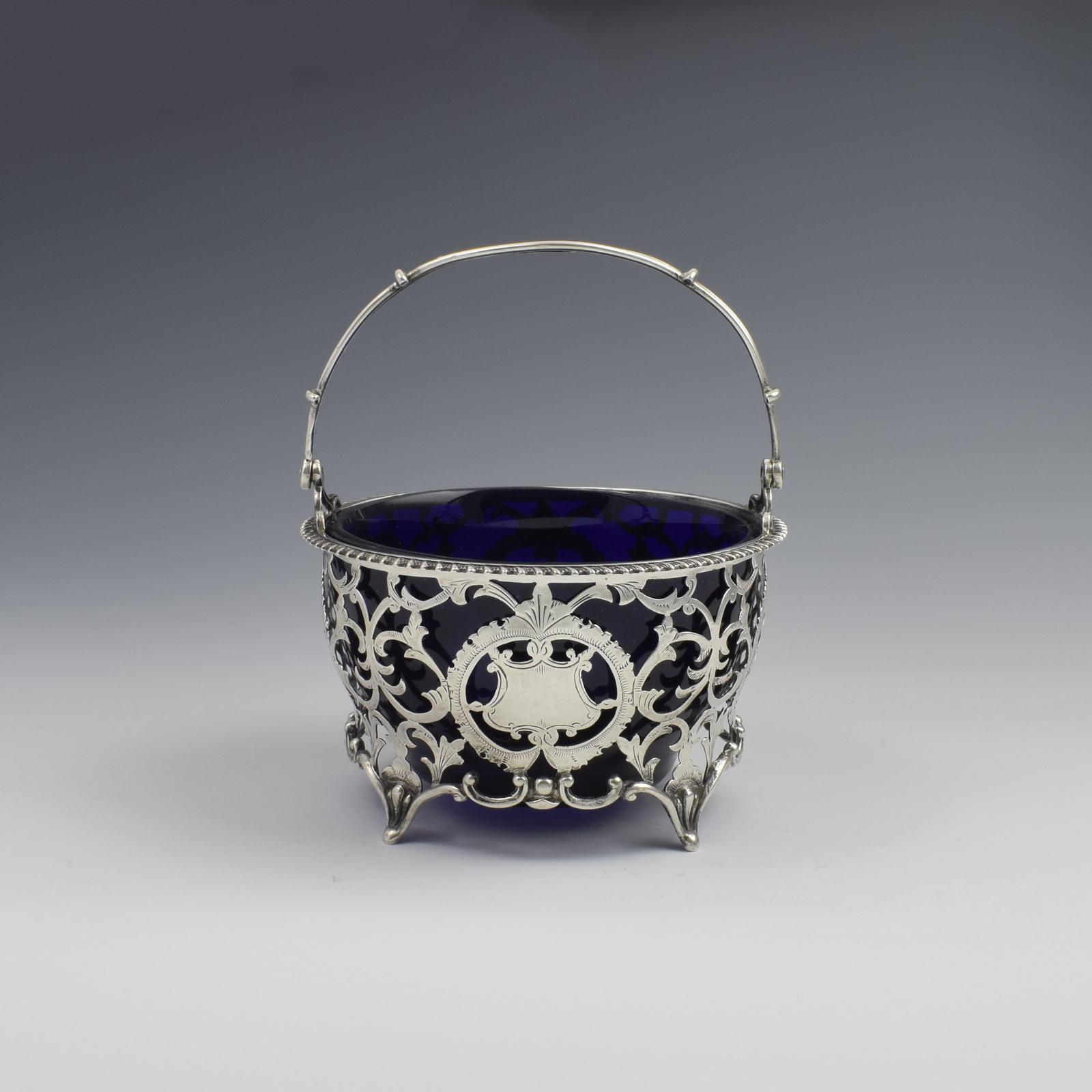Pretty Edwardian Pierced Silver Sugar Basket / Bonbon Dish / Bowl