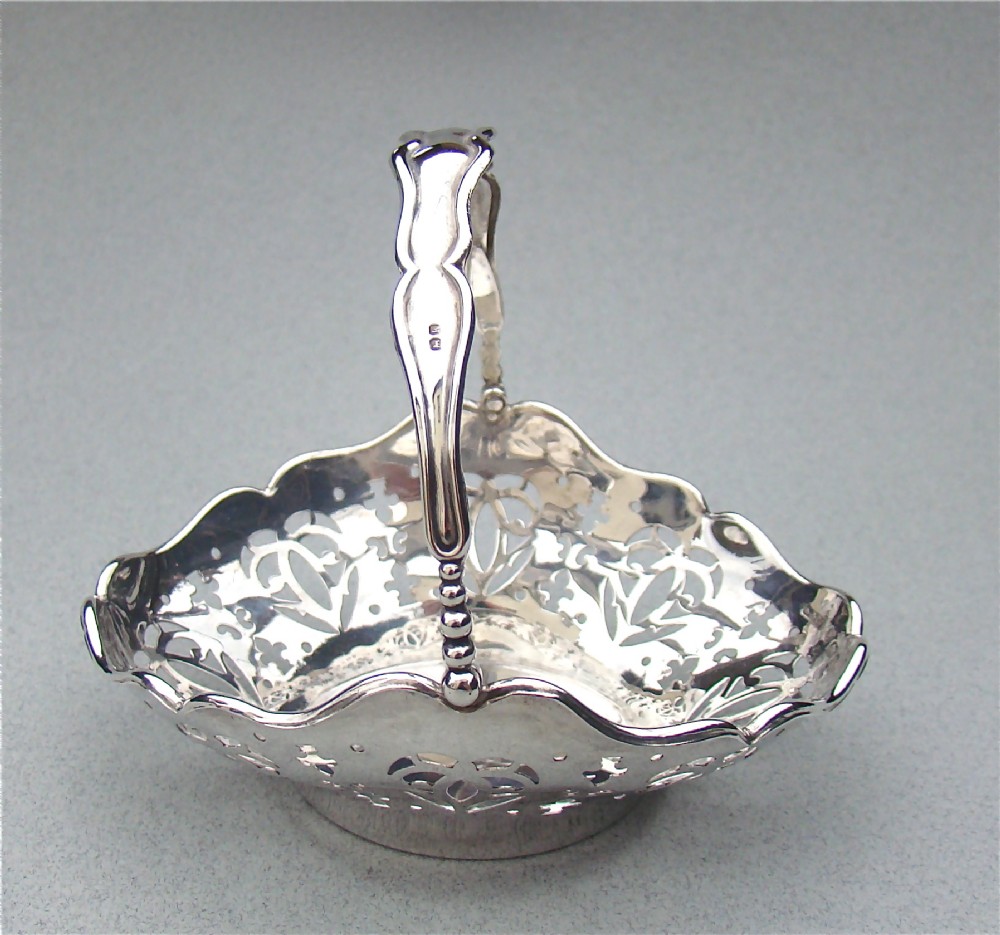 Pretty Edwardian Silver Swing-Handled Bonbon Dish by Spurrier & Co, Birmingham 1909