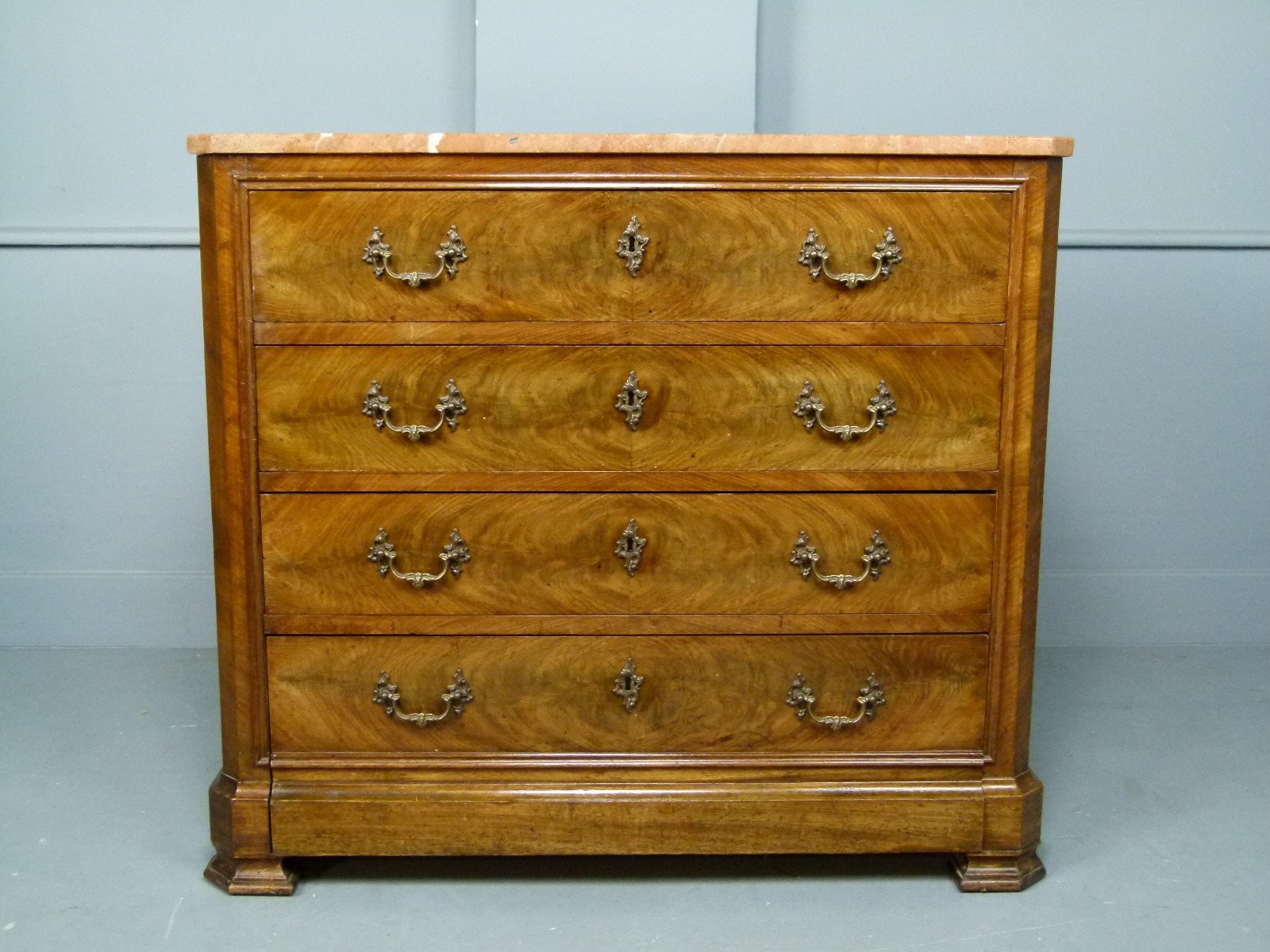 Pretty French Figured Walnut Commode Chest of Drawers c.1900