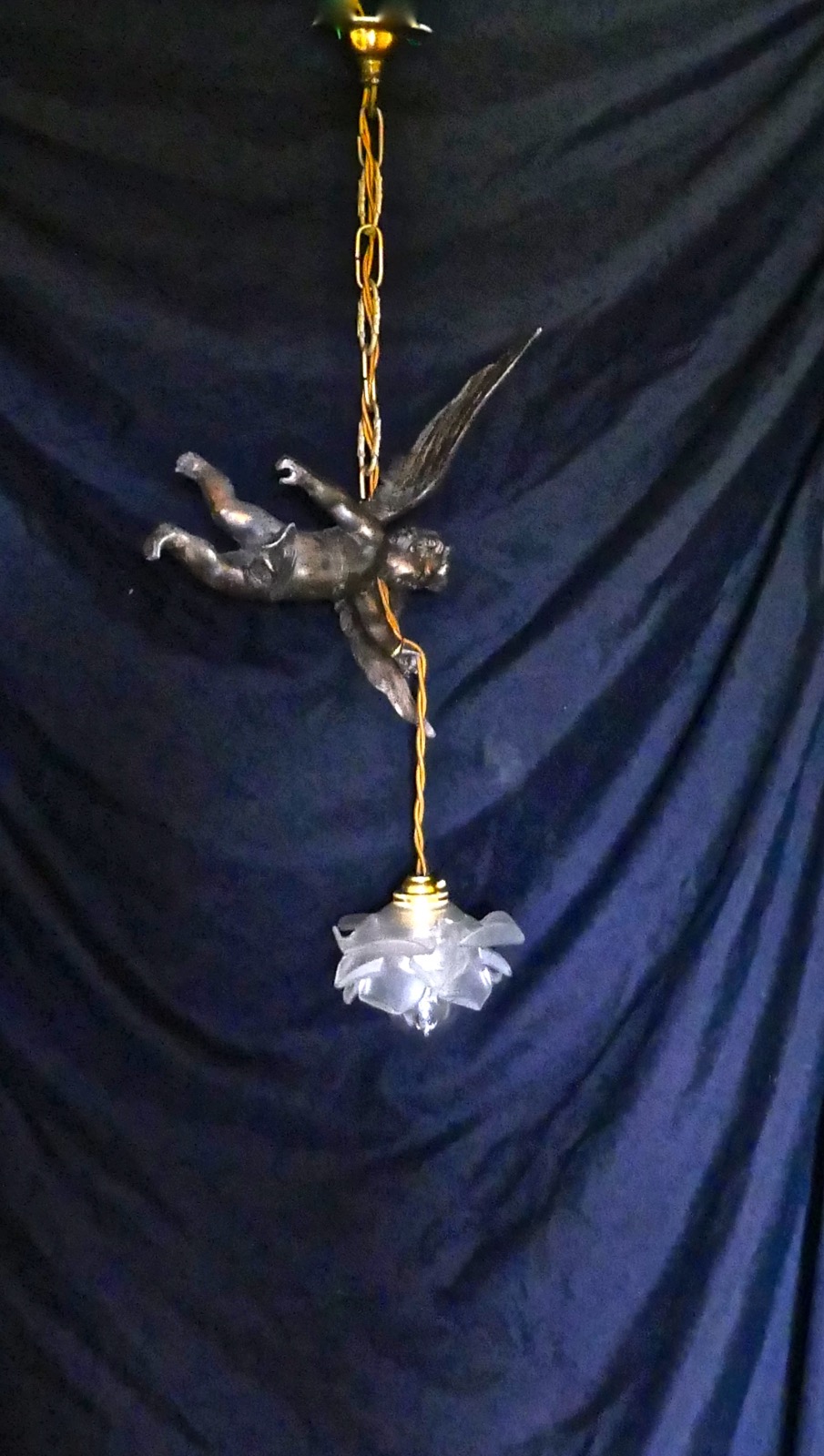 Pretty French Ormolu Cherub Ceiling Pendant c.1910
