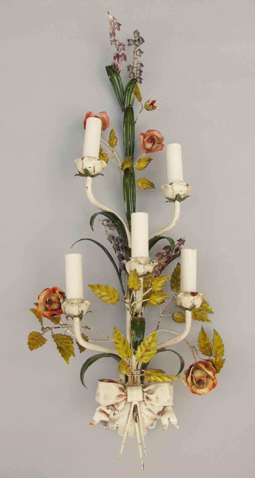 Pretty French Toleware Floral Wall Light Sconce c.1920