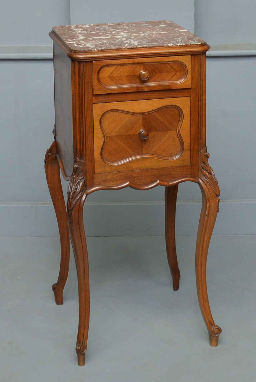 Pretty French Walnut Bedside Marble Top Cabinet C.1890