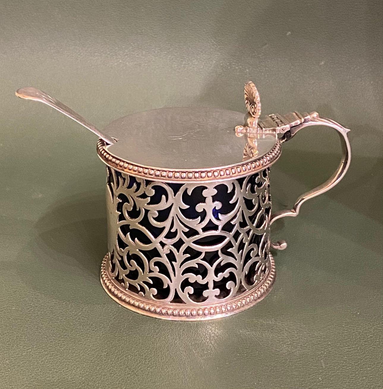 Pretty George III Sterling Silver Mustard Pot With Blue-Glass Container