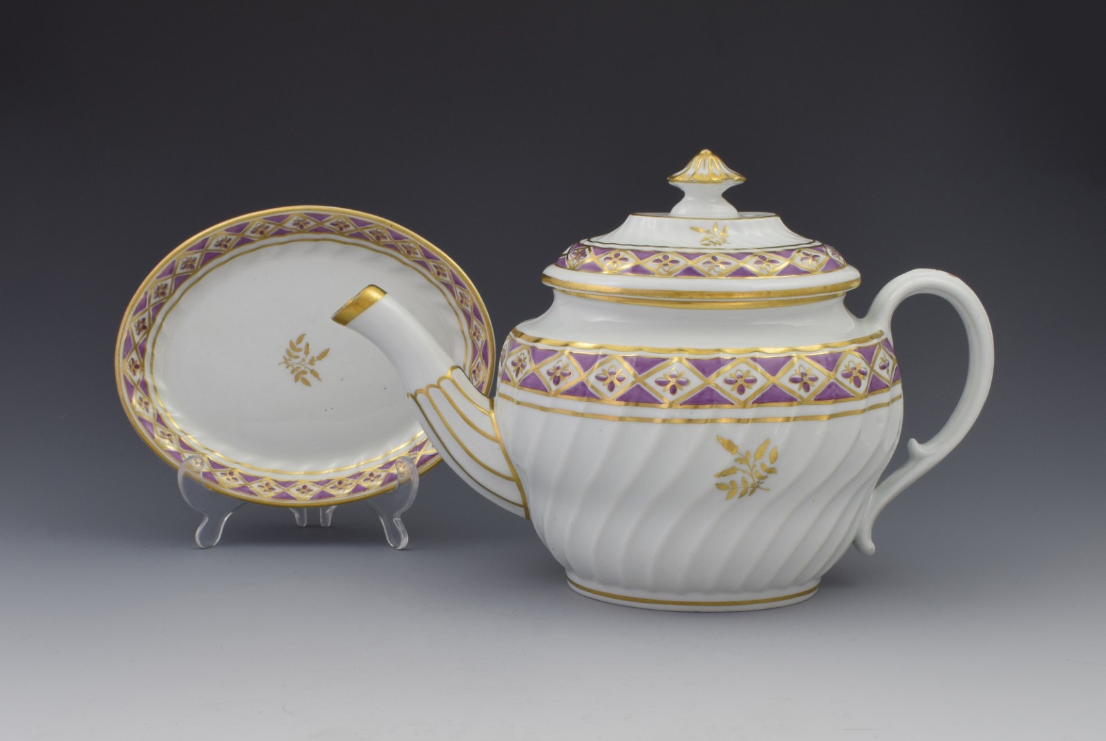 Pretty Georgian Coalport Shanked Teapot & Stand c.1800