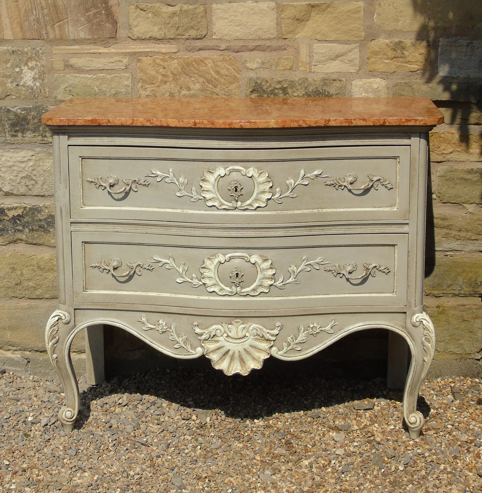 Pretty Hand Painted French Chest of Drawers with Figured Marble Top