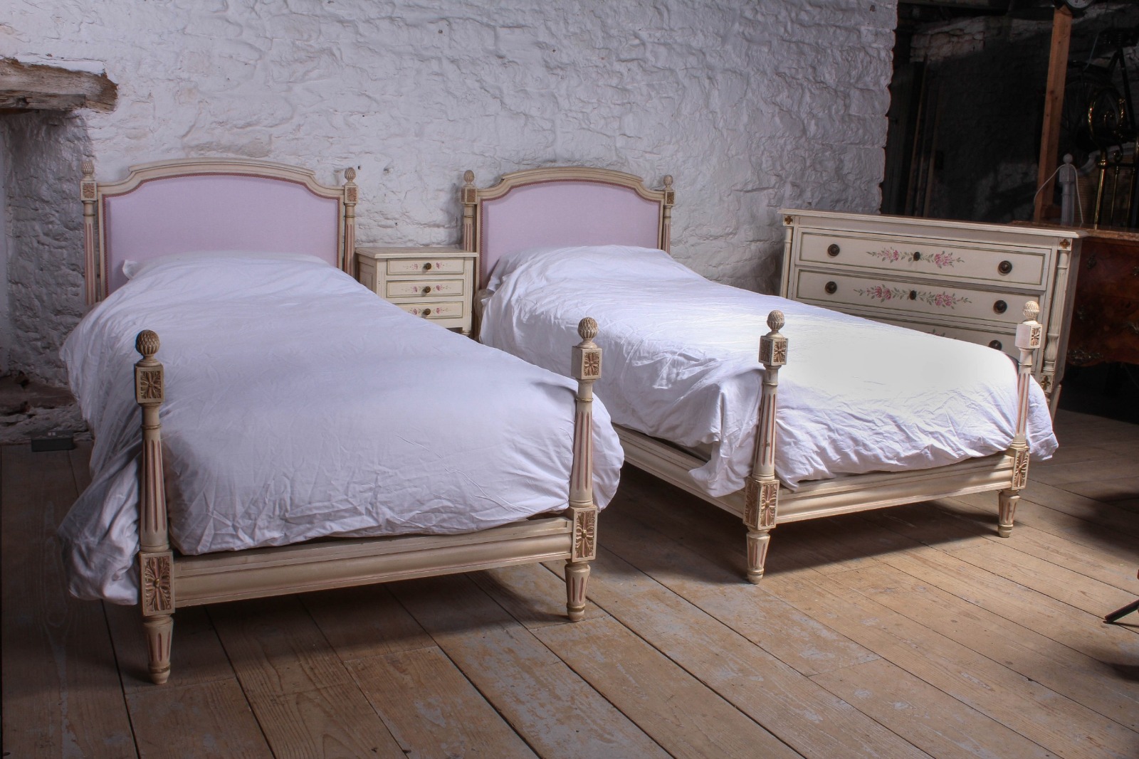 Pretty in Pink Pair of French Newly Upholstered Single Beds (1 of 1)