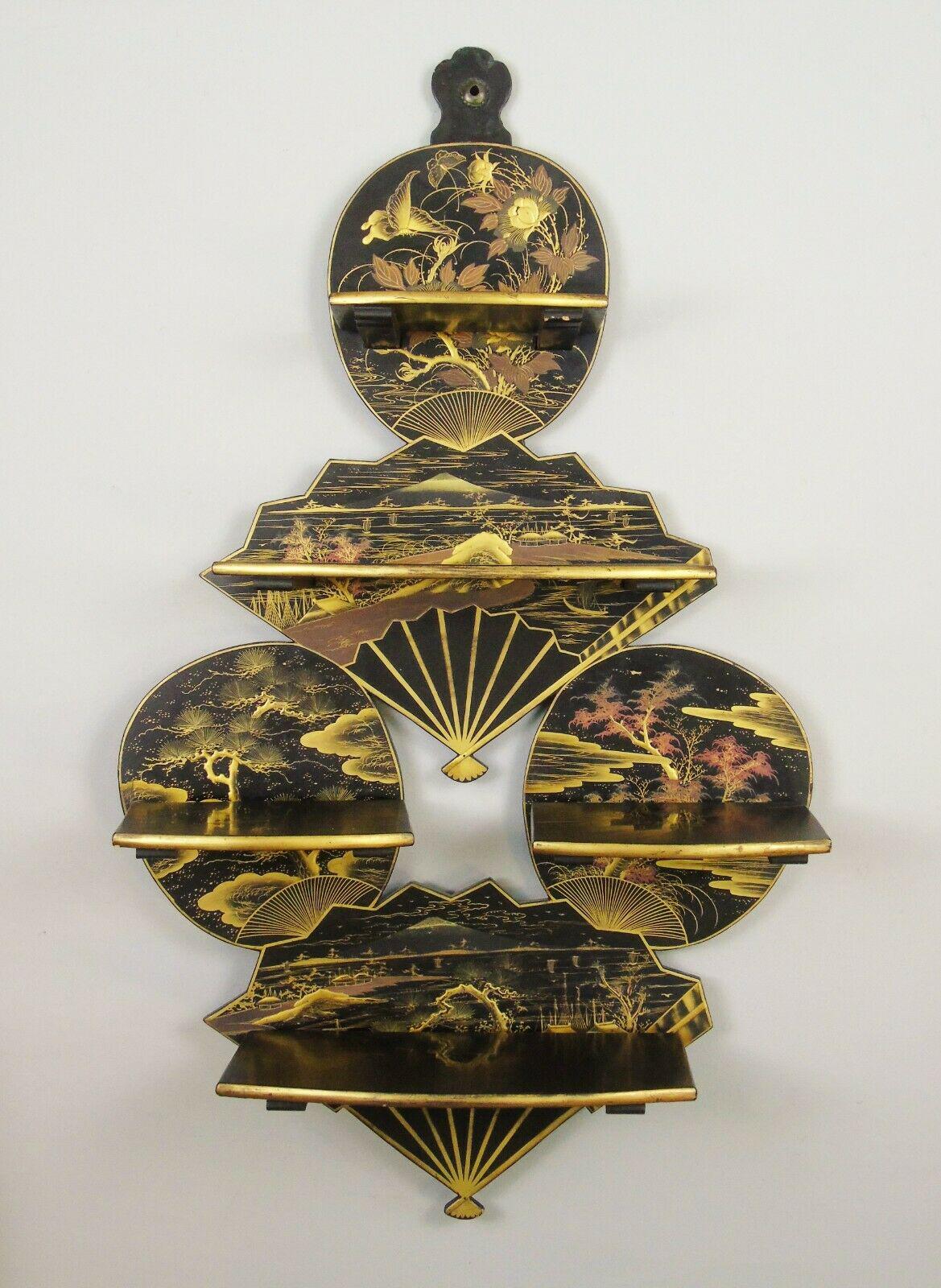 Pretty Japanese Black & Gold Lacquer Wall Display Shelves