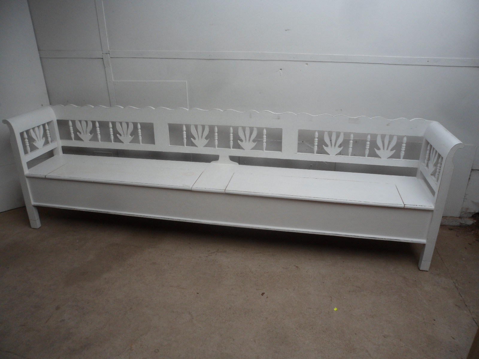 Pretty Large 3 Metre 6 Seater Shabby Chic White Painted Box Settle / Bench