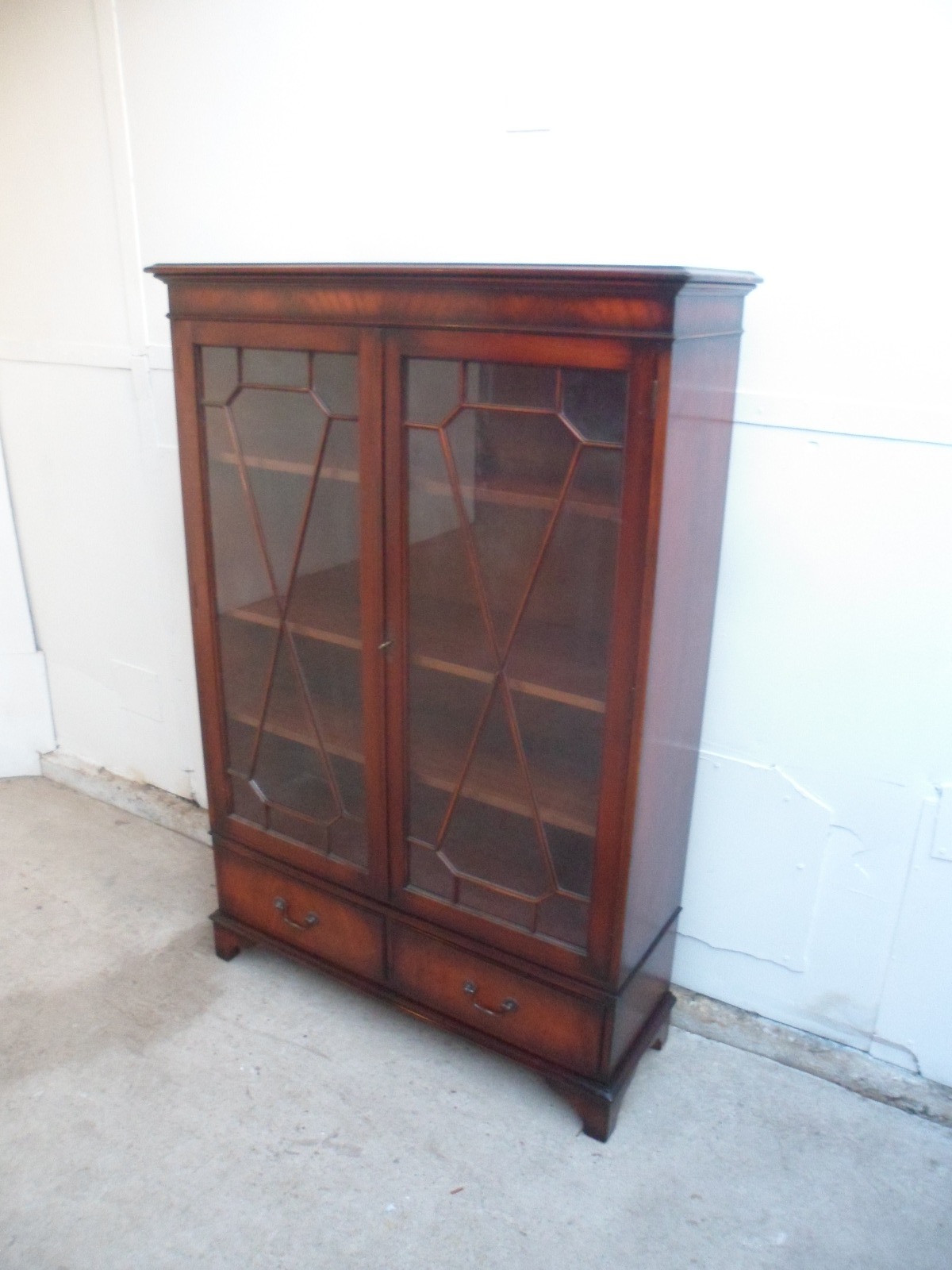 Pretty Late 20th Century Astral Glazed Mahogany 2 Door 2 Drawer Bookcase