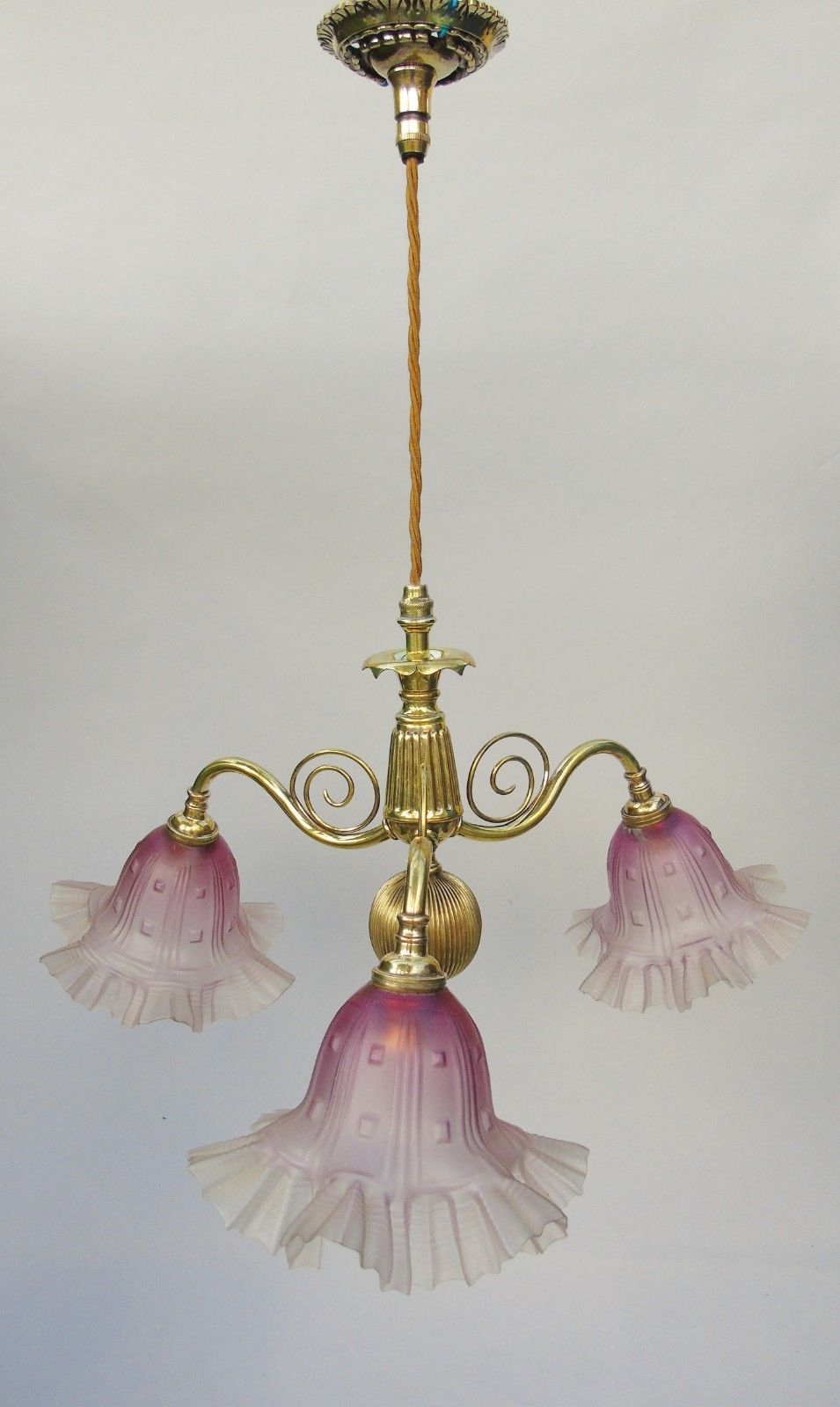 Pretty Late Victorian 3 Branch Chandelier Ceiling Light