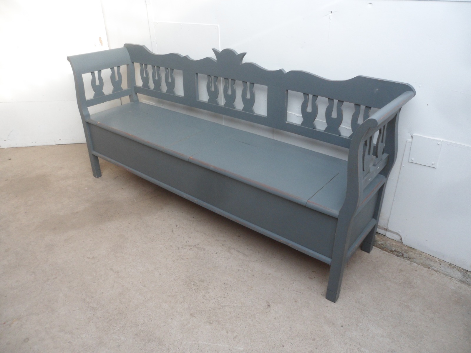 Pretty Mid Grey Old Pine 3/4 Seater 2 Lid Box Settle / Bench