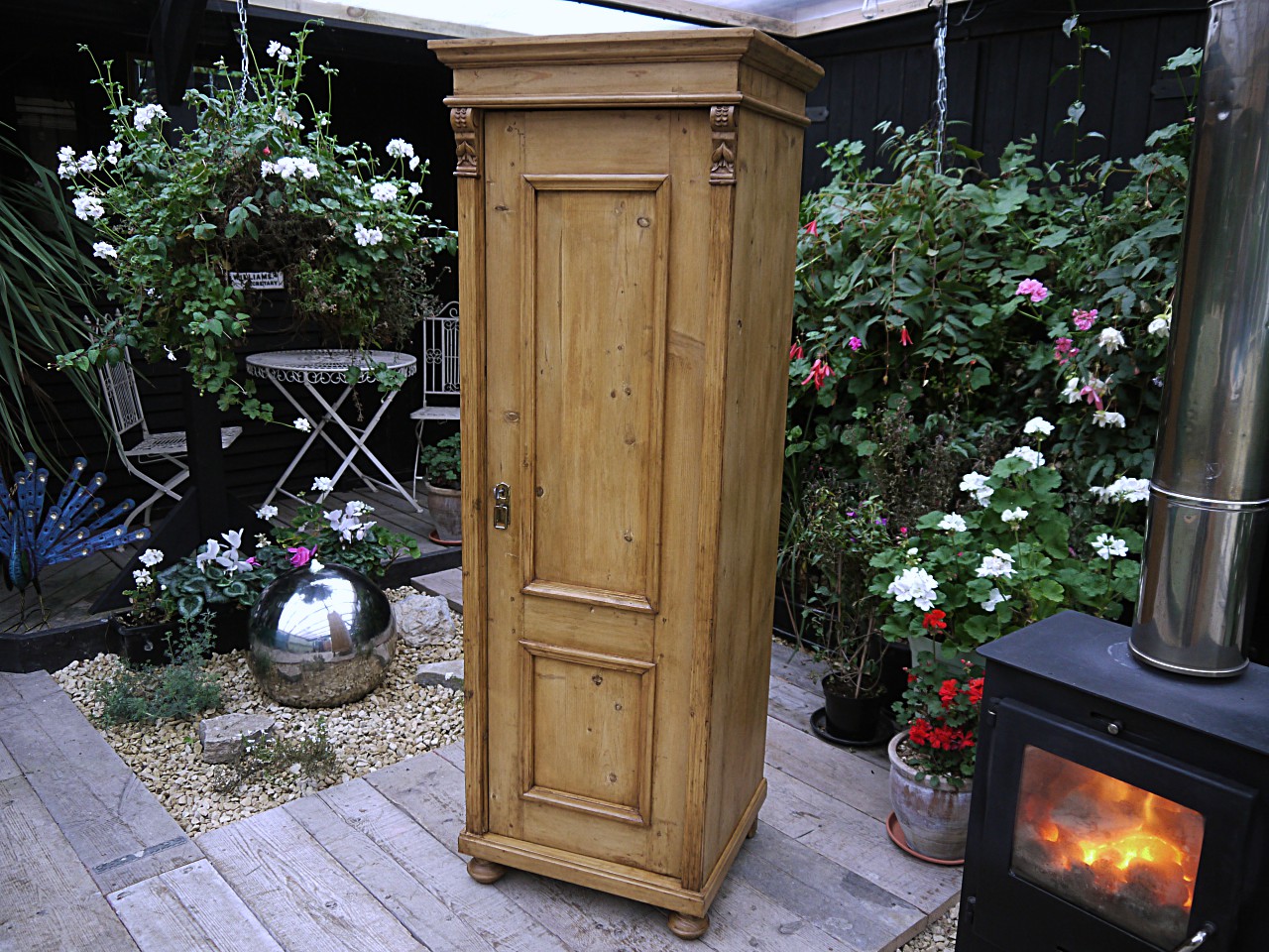 Pretty & Old Antique Pine Tall Slim Linen / Larder / Food Cupboard