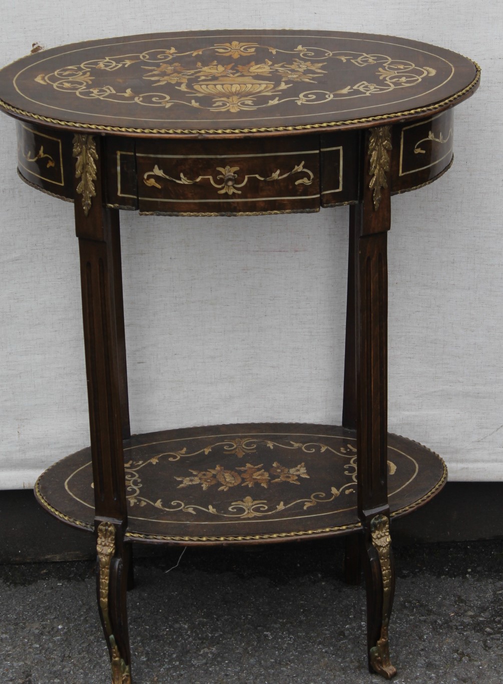 Pretty Oval Mahogany Side Table with Marquetry 1960s
