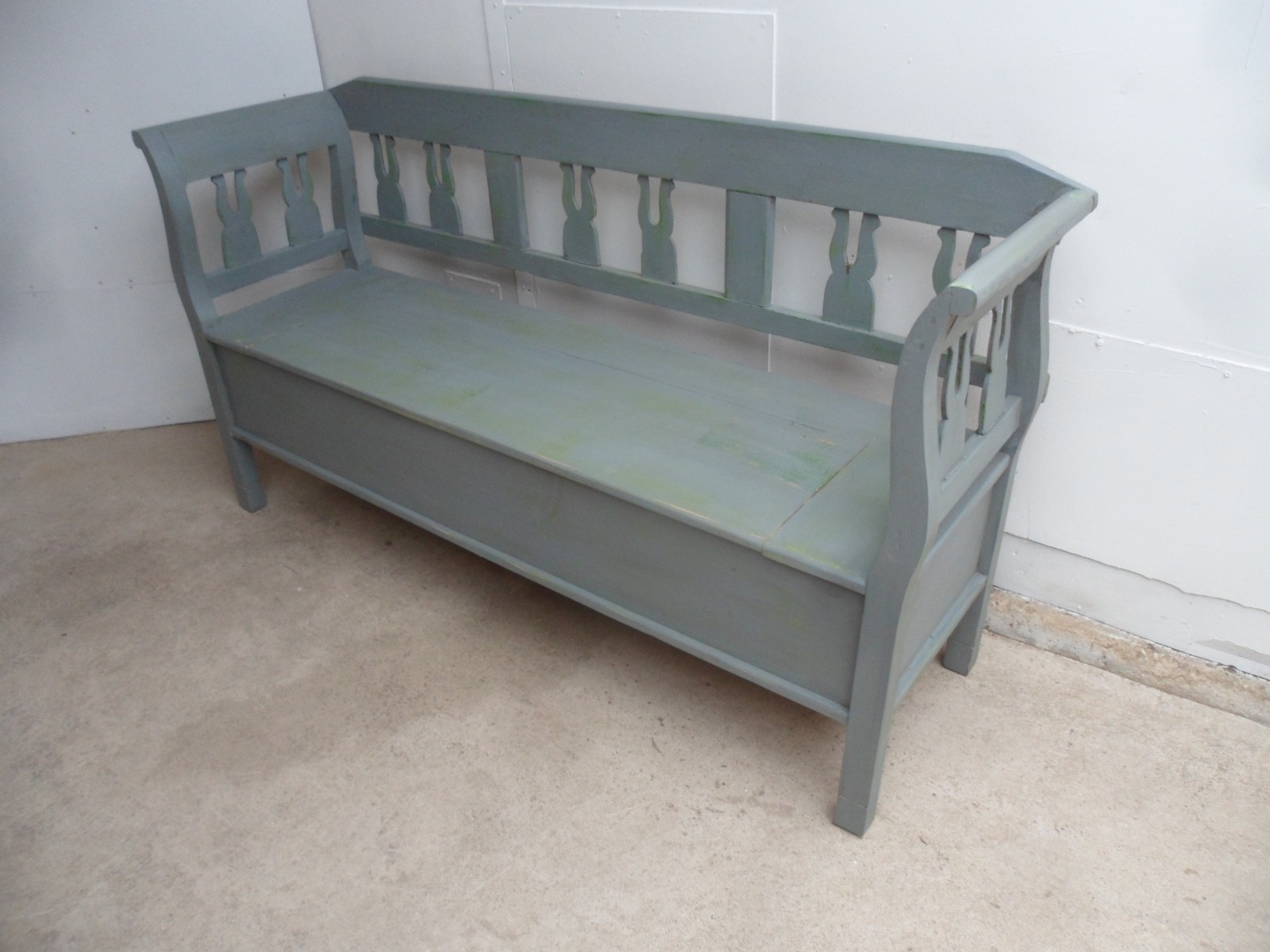 Pretty Painted Grey & Green Antique Pine Hall / Kitchen Box / Settle / Bench